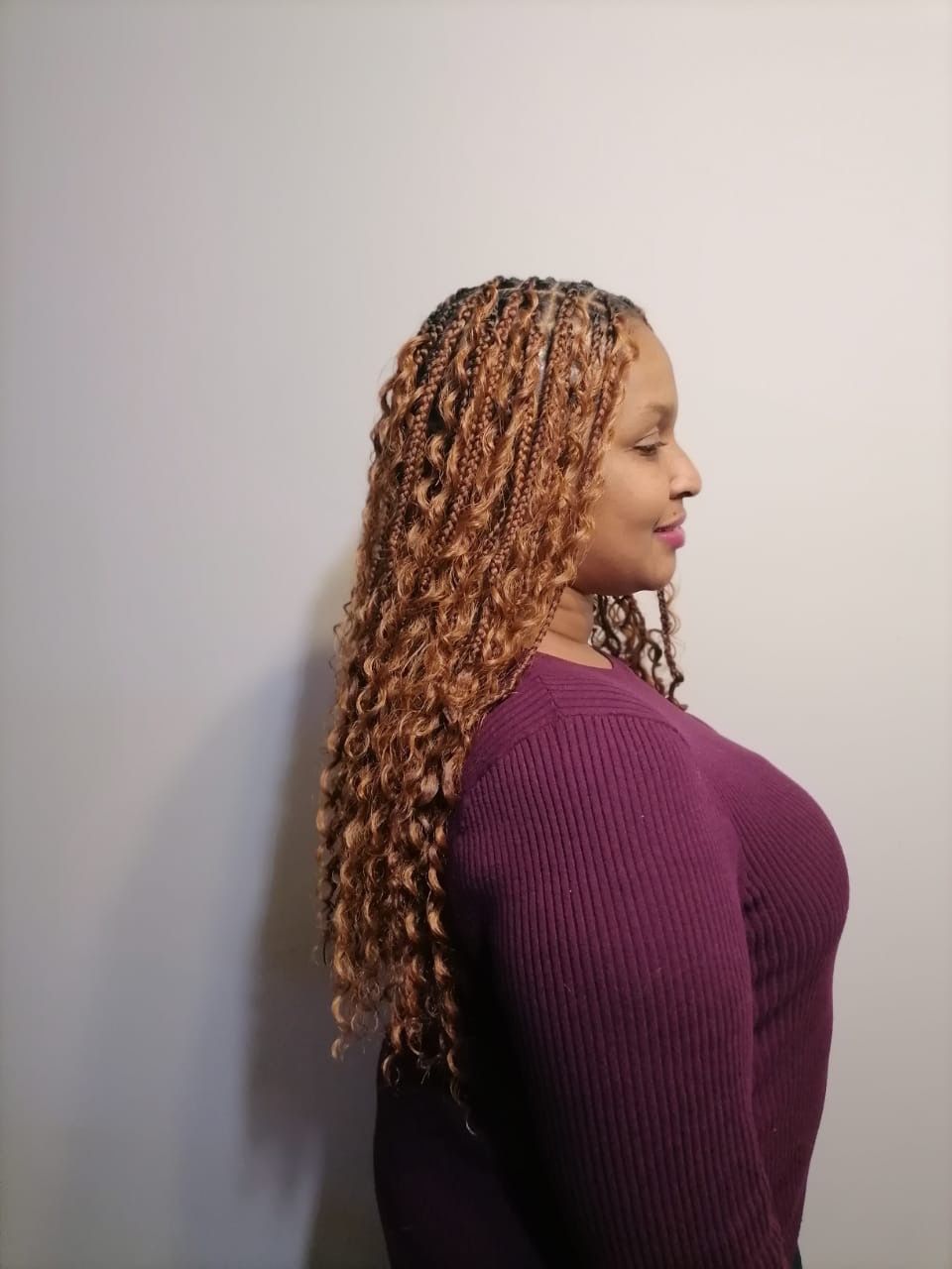 Our boho braids blend texture and volume for a carefree yet stylish look. This style incorporates loose, flowing braids that add dimension and movement, perfect for those seeking a unique and trendy appearance.
