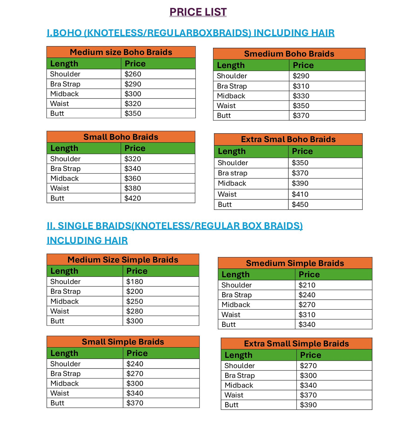 Our single braids are designed to offer a neat, long-lasting style that suits everyday wear and special occasions. Each braid is carefully crafted to ensure comfort and durability, using techniques that protect your natural hair.
